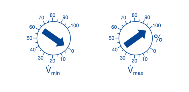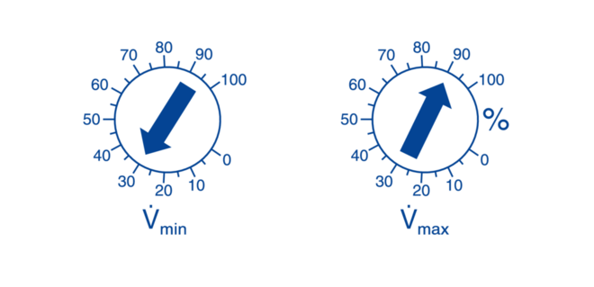 Les paramètres de débit Vmin et Vmax peuvent être réglés sur des potentiomètres.